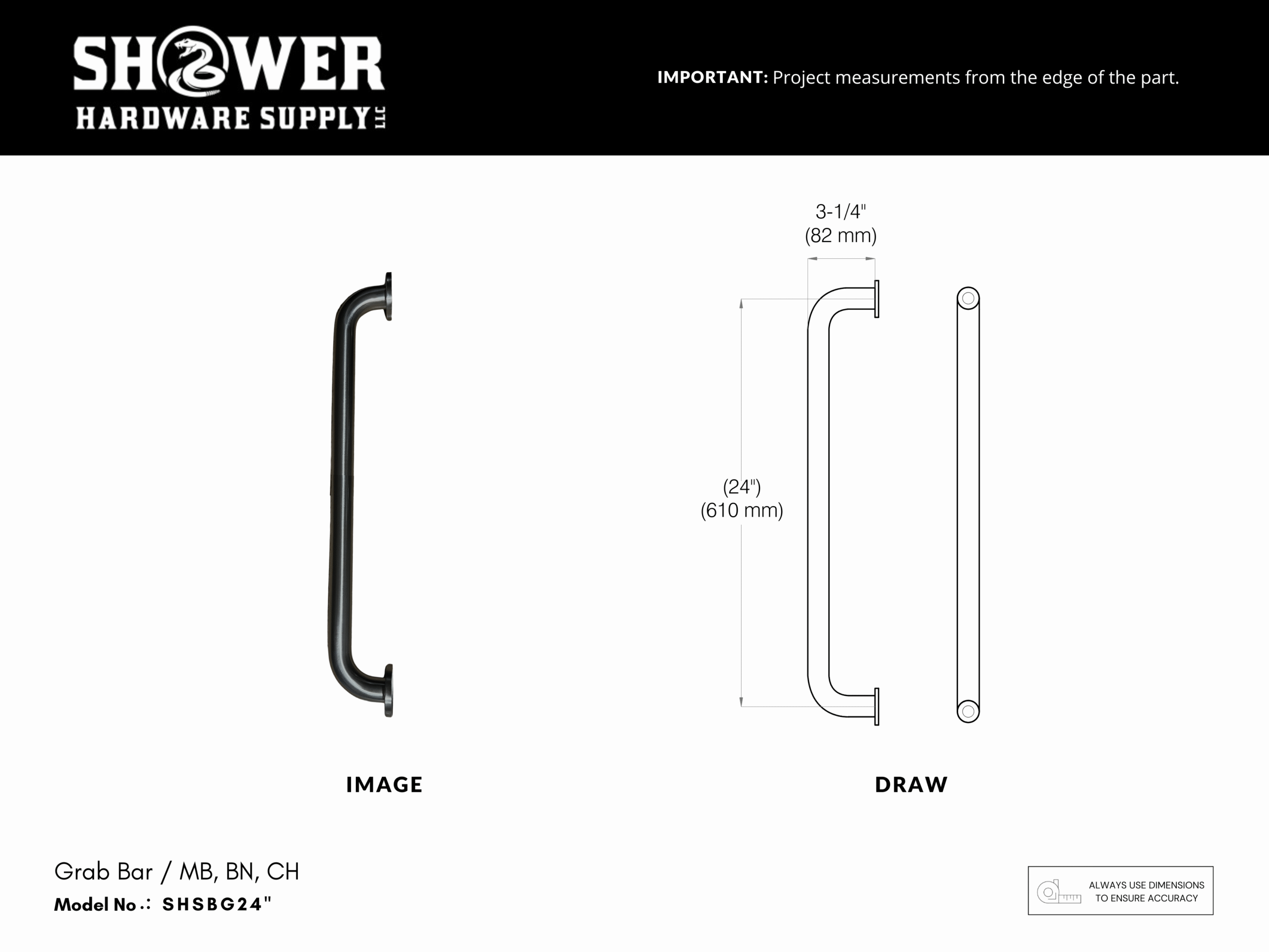 Grab Bar 24″ Smooth Concealed Screws